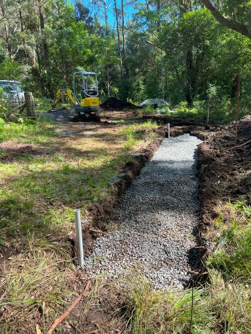 As groundwater builds up in the surrounding soil, it naturally flows into the gravel trench, enters the perforated pipe, and is redirected to a designated safe discharge area. This system operates efficiently below ground level and does not require visible grates or channels, making it particularly advantageous in clay-heavy soils, which are common in Wollongong and the broader Illawarra region.